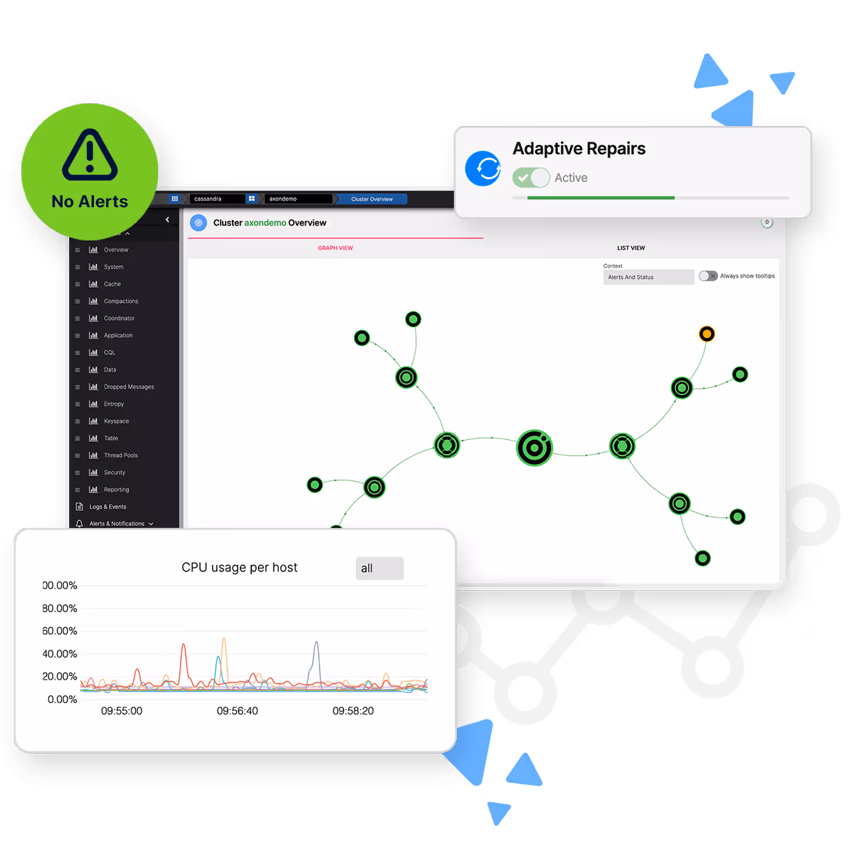 Frustrated by the lack of effective tools to monitor and maintain Cassandra and Kafka, our experts developed AxonOps to be the single control plane combining monitor and operate these critical data platforms via a single intuitive UI.