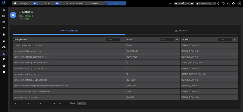Kafka Broker settings can be easily searched so you know exactly how they are configured.