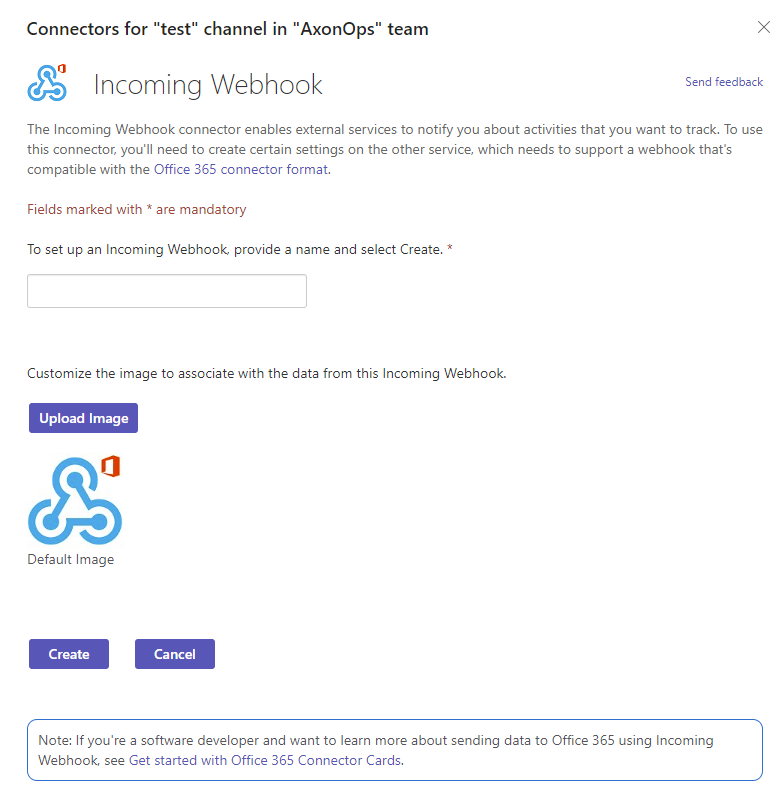 Enter a name, copy the url in the Webhook URL field, and select Create.