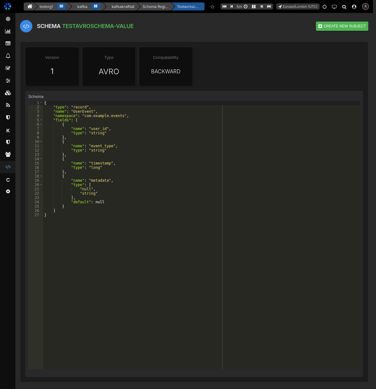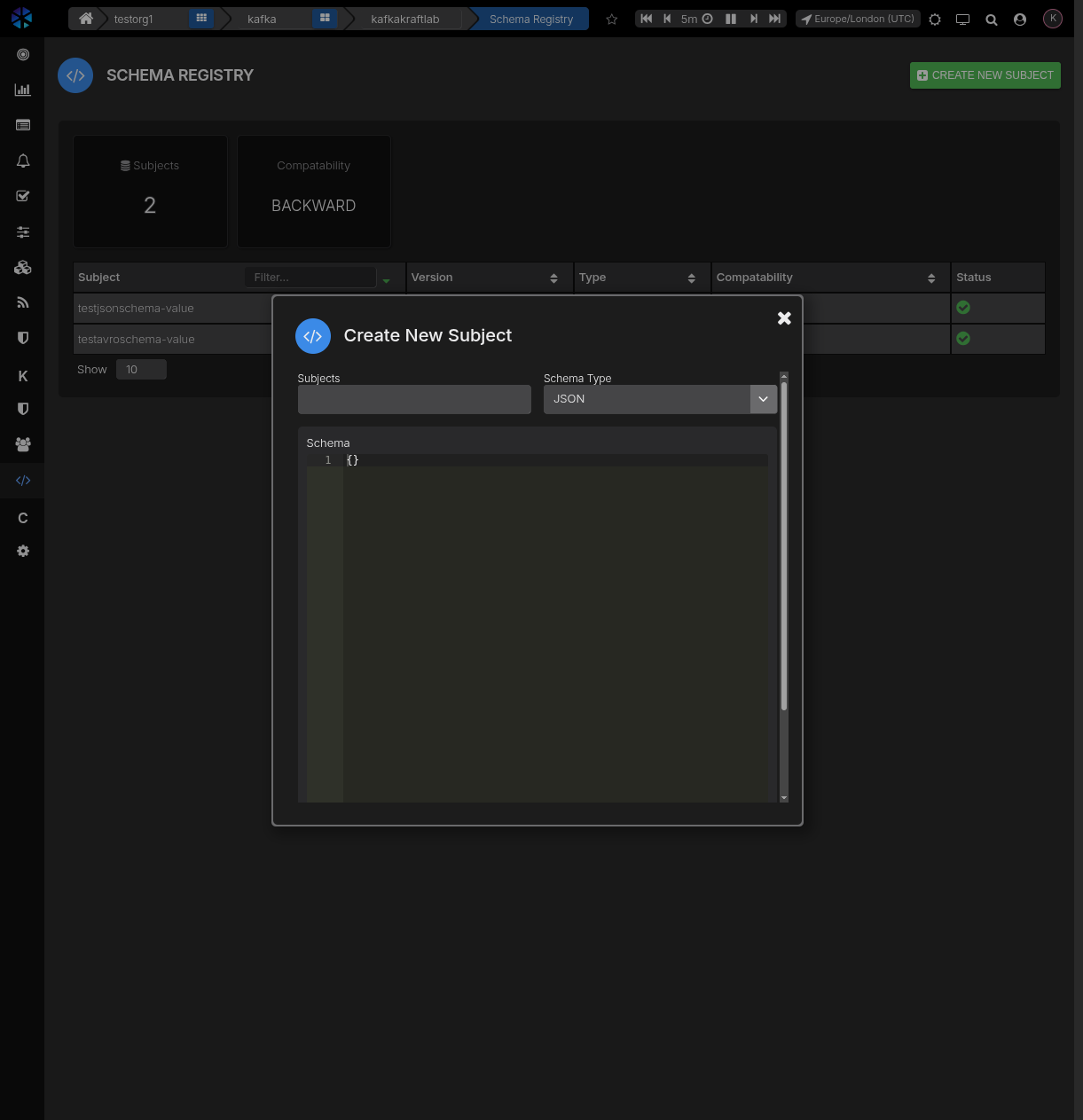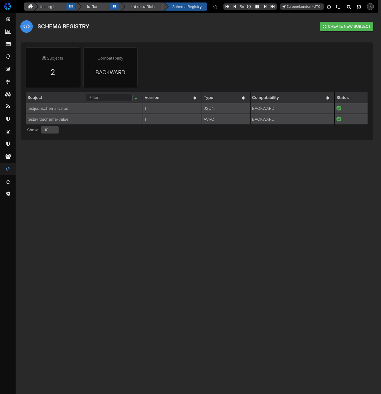 - Use Create New Subject to register new schemas.
