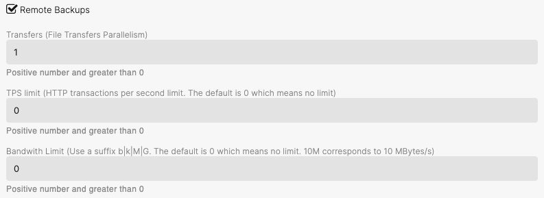 The number of file transfers to run in parallel. It can be beneficial to set this to a smaller number if the remote is giving timeouts. You can set this to a bigger number or leave it at 0 if you have lots of bandwidth and a fast remote.