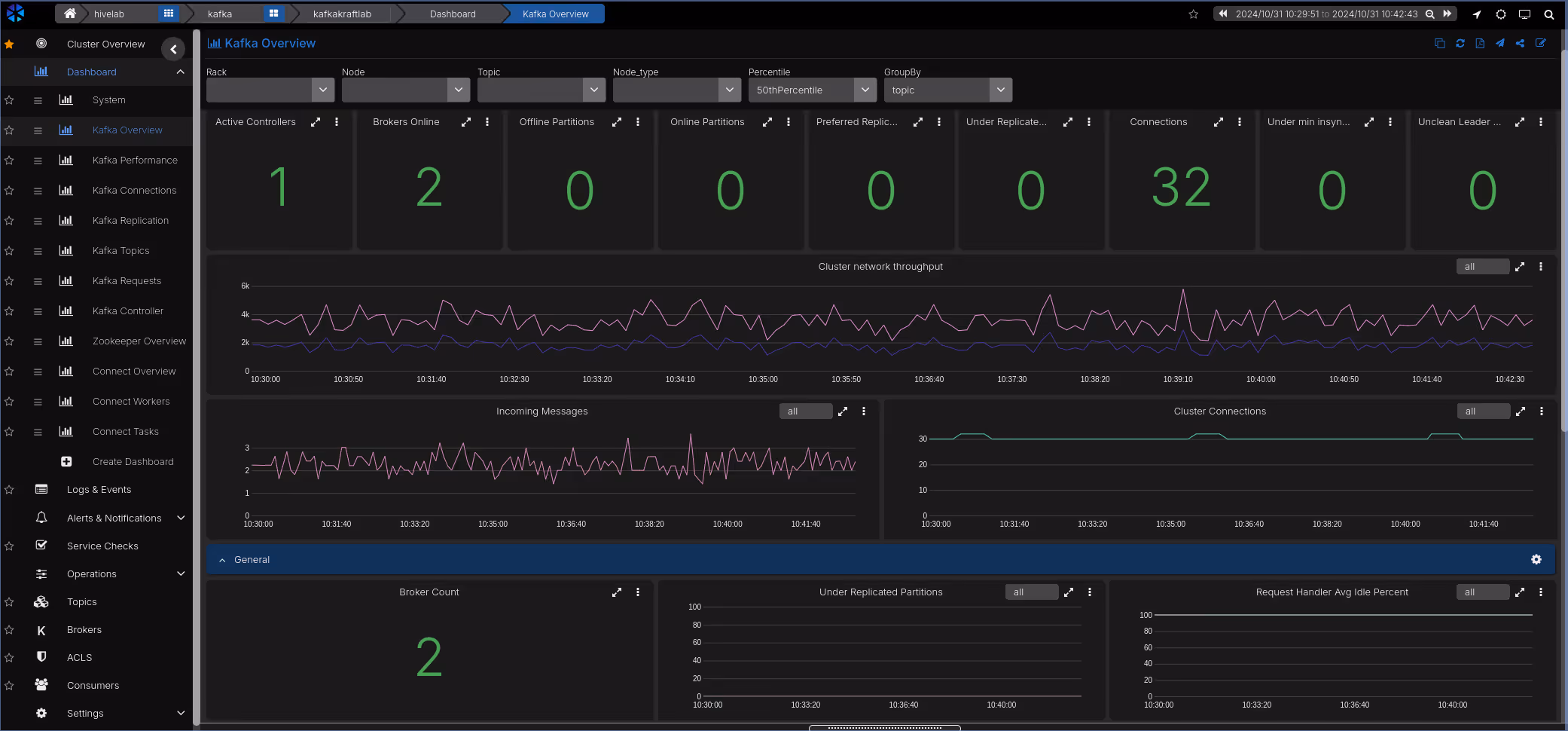 All the metrics you need including; Broker, Kraft metrics, Zookeeper, Topics, Consumer groups, JVM,Thread pools, Authentication failures, Data log details, Connection rates, Throughput all configurable with threshold alerts.