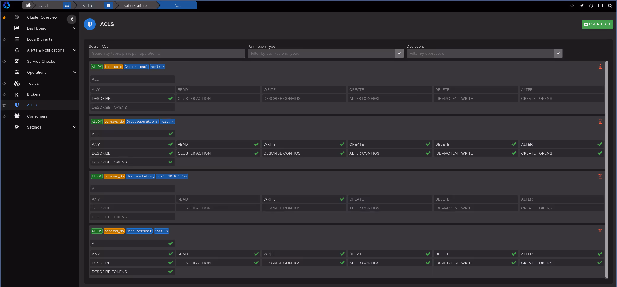 Easily maintain and update your topic ACLs including, user and group authentication, change history and drift detection.